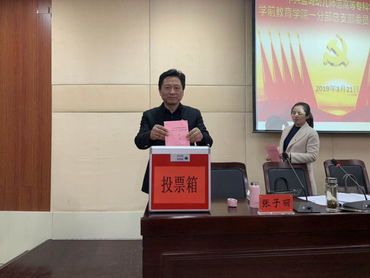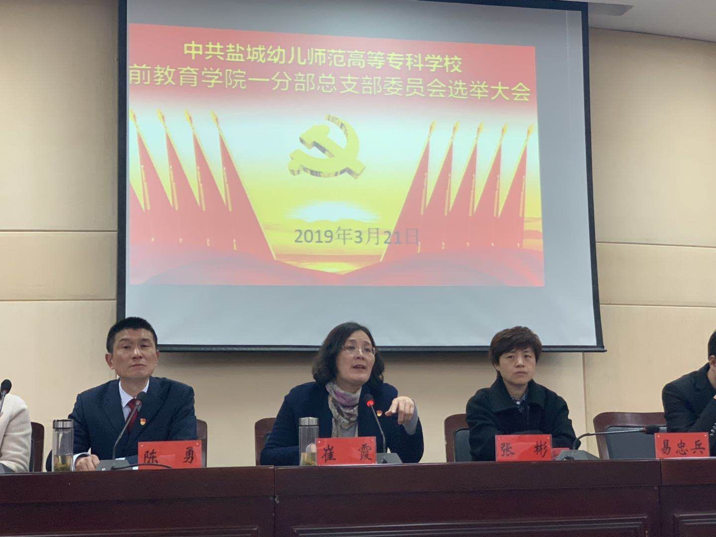 2019年3月21日下午,学前教育学院一分部召开党总支委员选举大会。校党委委员、副校长崔霞、学生处副处长张彬等同志出席会议,一分部党总支全体党员参加会议。会议由陈勇同志主持。