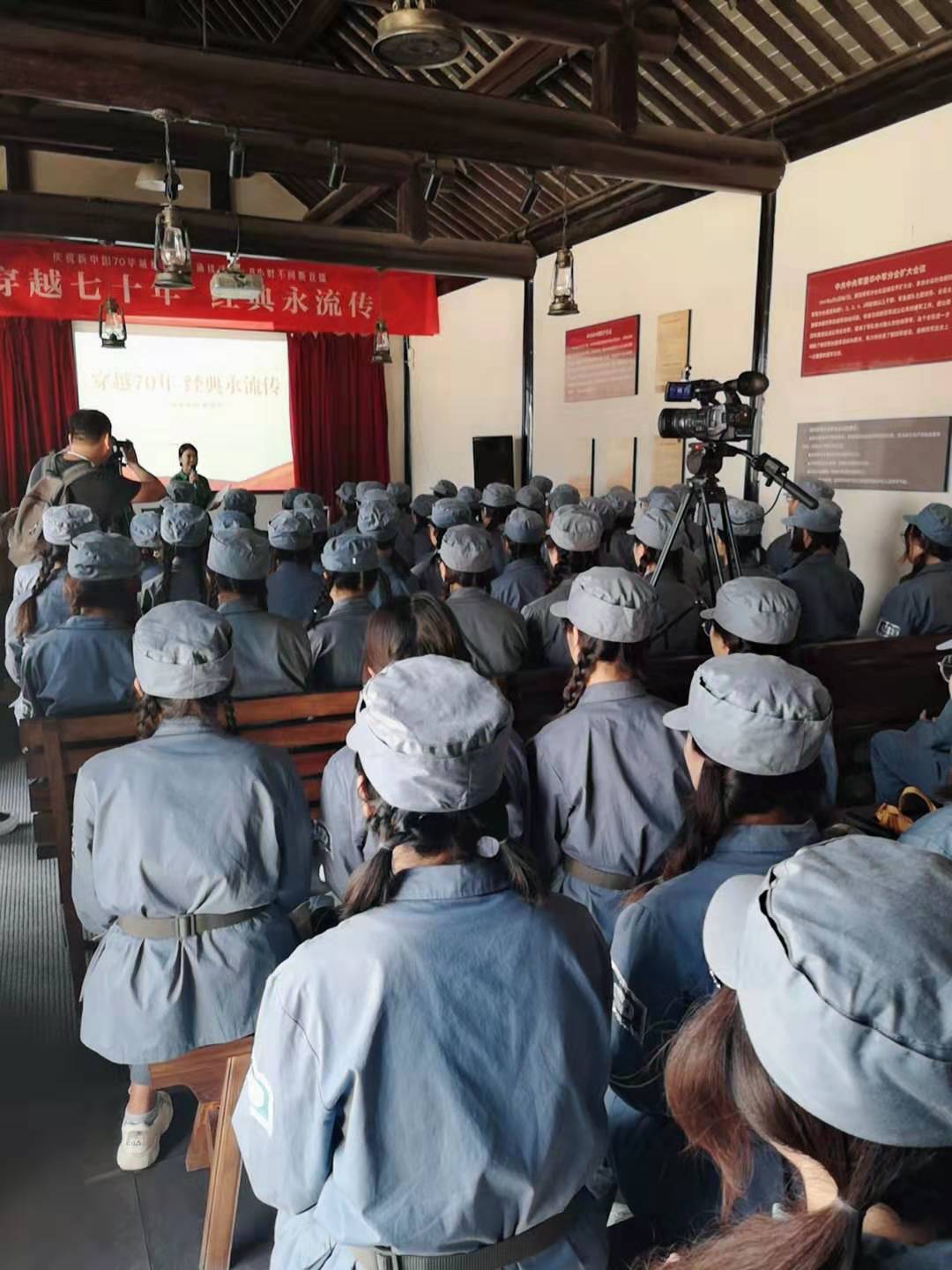 今年是新中国成立的70周年,为更好地阅读红色经典,传承红色基因,学前教育学院一分部学高1803班、学高1804班八十名学生来到新四军泰山庙军部旧址参加“穿越七十年 经典永流传”红色经典诵读活动。