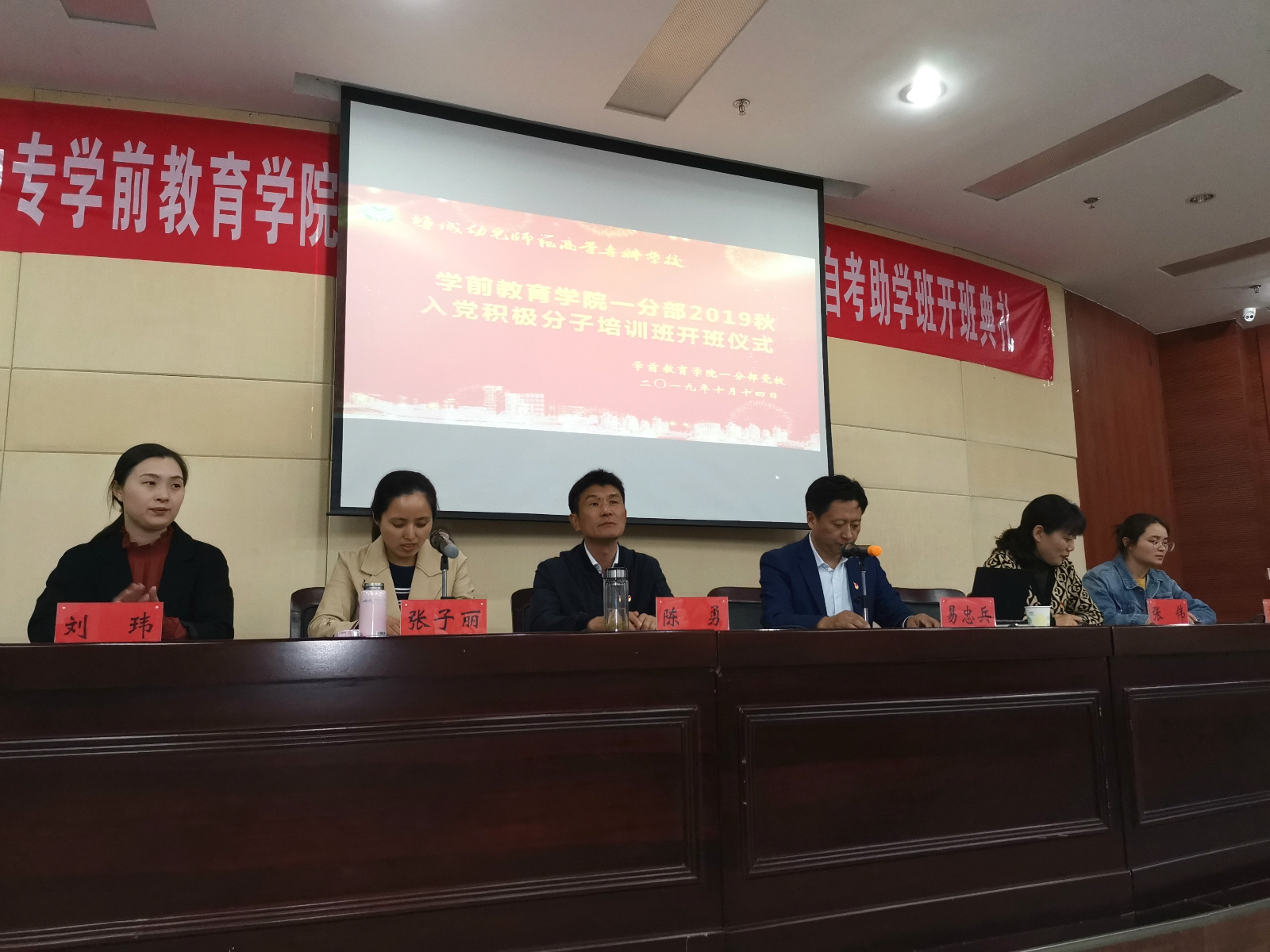 为切实做好我院学生党员发展工作,加强学生党性教育,增强党性观念,10月14日晚,我院2019年秋学期入党积极分子培训班开班仪式在图文信息中心一楼报告厅举行。学院党政领导及全体入党积极分子参加开班仪式,仪式由院党总支副书记、副院长张子丽主持。