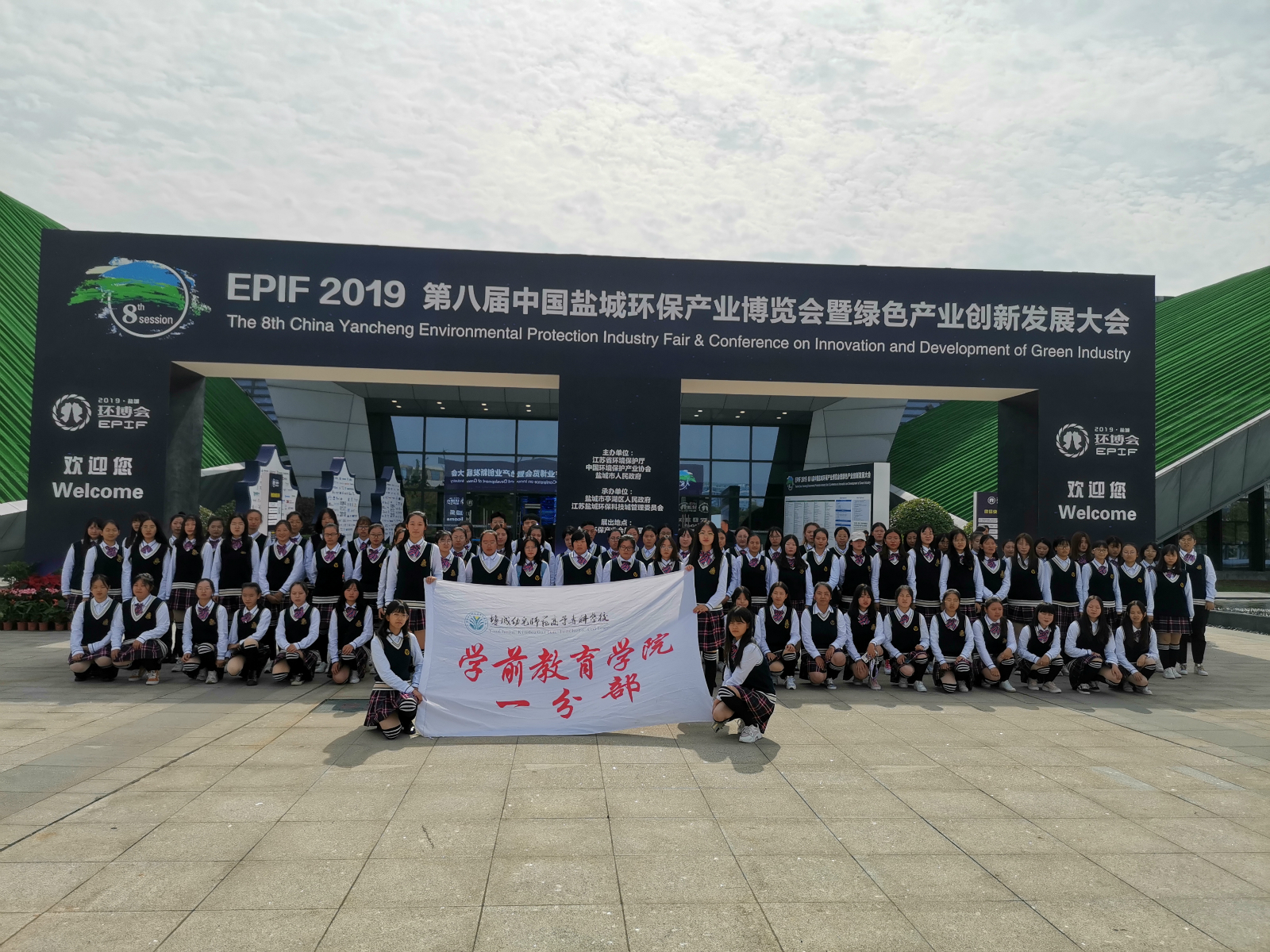 10月27日上午,学前教育学院一分部近500名学生在院领导陈勇、张子丽及辅导员带领下来到盐城环保科技城,参观“2019第八届中国盐城环保产业博览会”。
