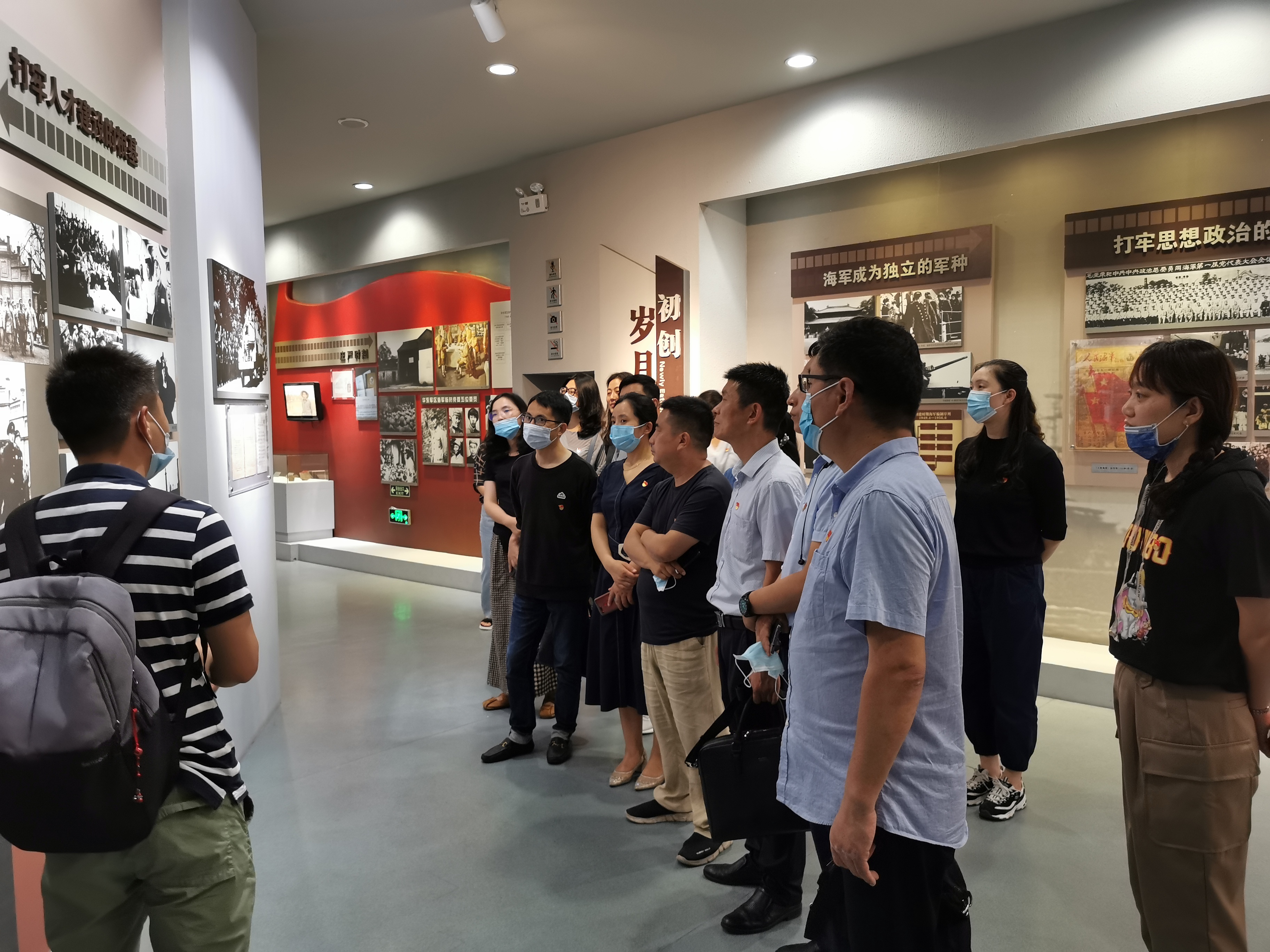 在中国人民解放军海军诞生地纪念馆,党员们从“近代沧桑、白马建军、威震海疆、发展壮大、鱼水情深”五个方面详细了解了我国海军在党的领导下,从无到有,从弱小到强盛的光辉历程。馆内陈列了大量的实物和图片,党员们不时驻足凝视,追寻着人民海军在战火中诞生、为新中国战斗、向现代化进军的红色足迹,内心深受教育,无不为革命先辈们运筹帷幄、决胜千里的宏伟气魄和不怕牺牲、英勇奋战的精神而自豪。