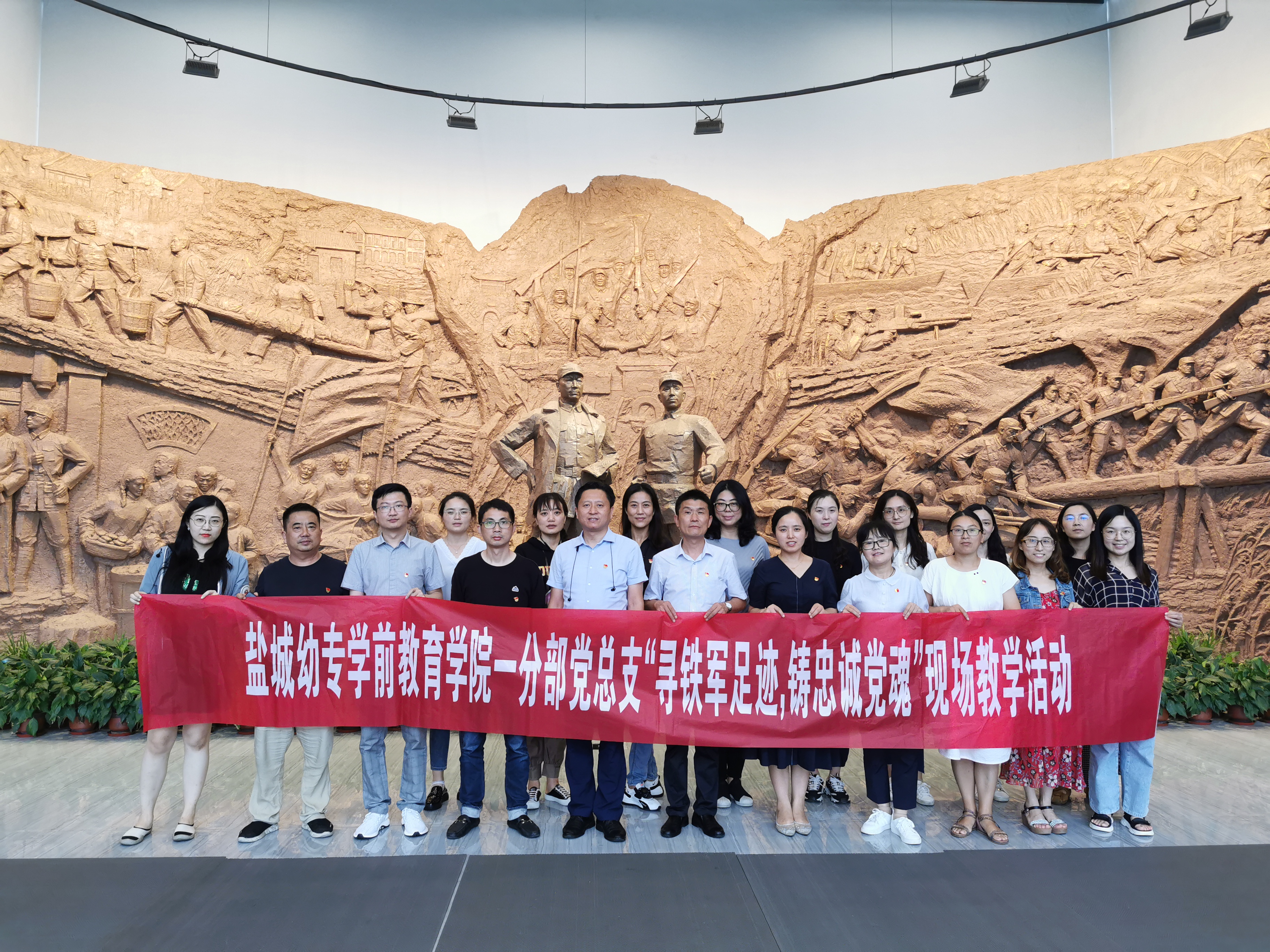 为加强我院全体党员党性观念和宗旨意识教育,激发党员干事创业、履职尽责的工作热情,推动我院“优质化党支部”创建,7月29日,学前教育学院一分部党总支党员同志赴新四军黄桥战役纪念馆等红色教育基地,开展“寻铁军足迹,铸忠诚党魂”现场教学活动。