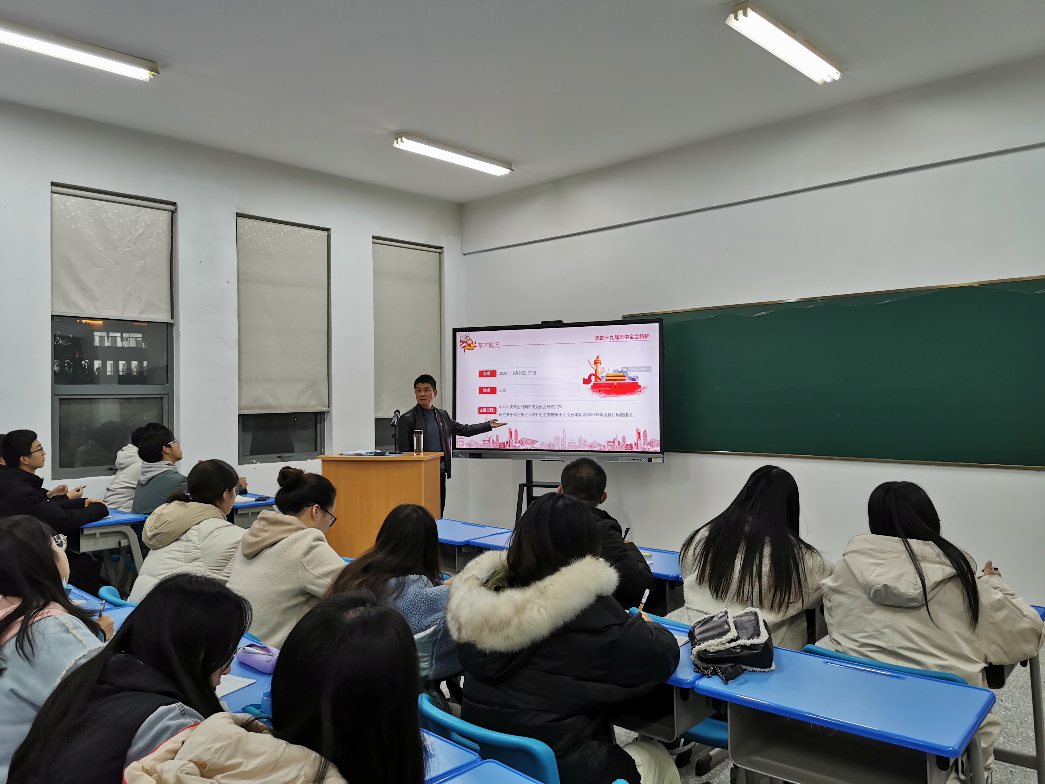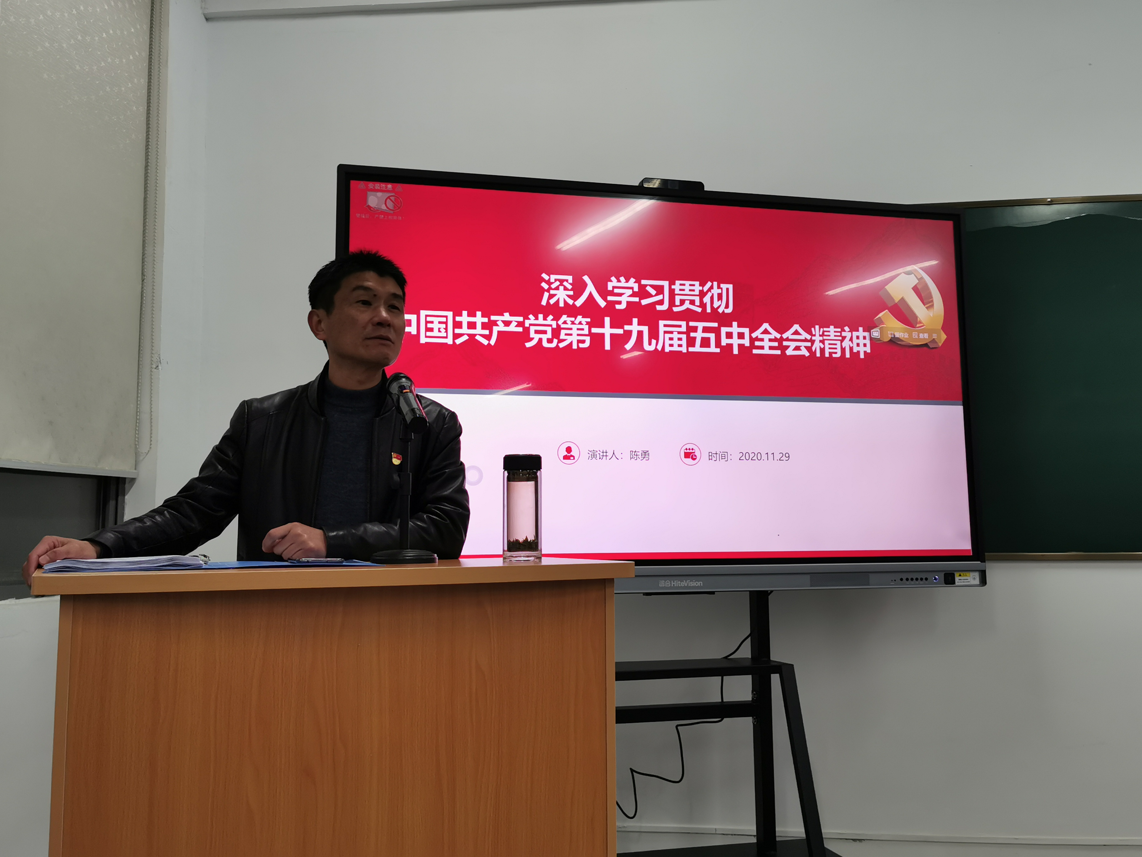 11月29日晚,学前教育学院一分部党总支陈勇书记为我院2019级已递交入党申请书同学上党课,宣讲党的十九届五中全会精神。副院长徐莉、院团总支书记陈兰参加会议。