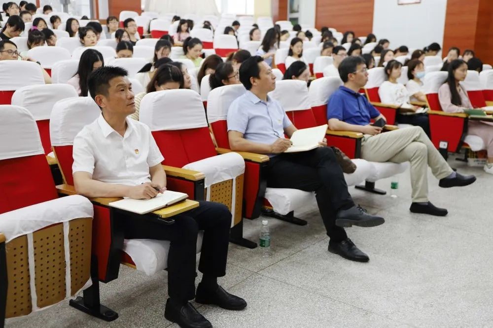 6月23日下午,在海洋路校区图文中心学术报告厅,校长姜统华以“中国共产党发展高等教育的百年历程、成就与展望”为题讲授专题党课,进一步推动党员师生精读、研读、深读党史,真正做到明理、增信、崇德、力行。学前教育学院一分部全体党员及入党积极分子近300人参加了党课学习。党课由学院党总支书记陈勇主持。