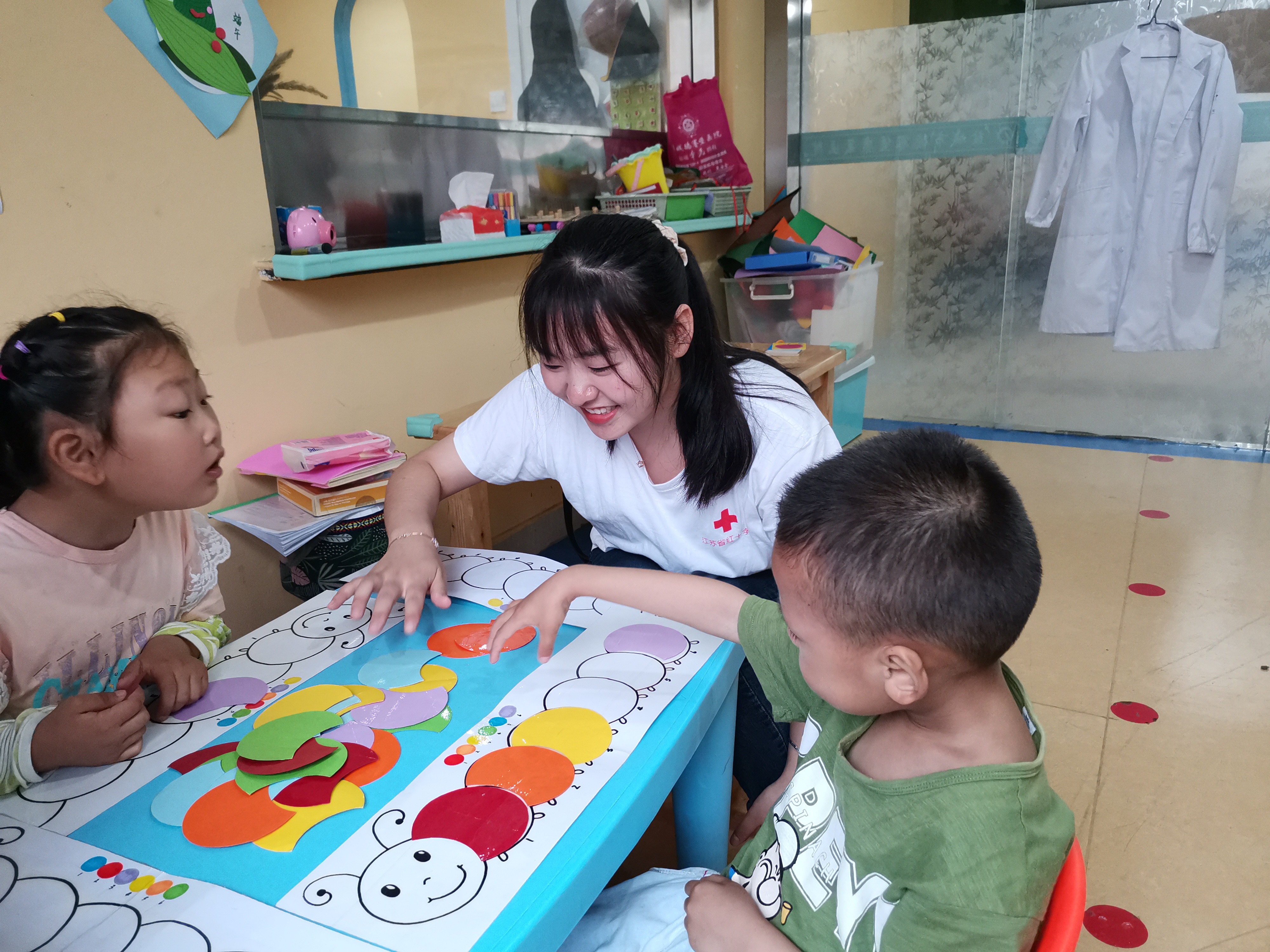 志愿者们还发挥学前教育专业优势,为特殊儿童开设爱心班,以自身专业知识为基础,切实有效地通过绘画、手工、绘本故事等多种艺术形式来与孩子们互动。