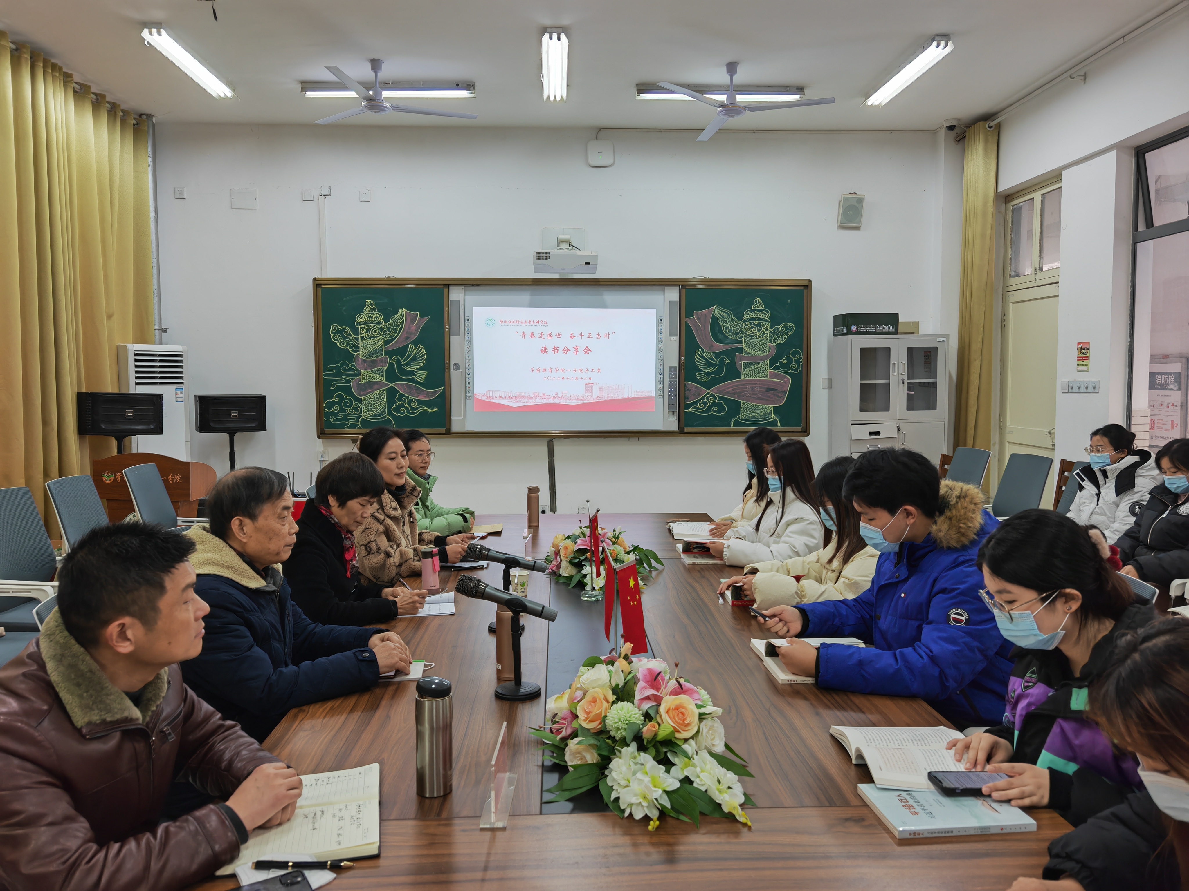 凝心静气读好书,学以致用创佳绩。12月12日下午,学前教育学院一分院关工委在党员活动室举办“青春逢盛世 奋斗正当时”读书分享会。校关工委秘书长徐东霞,校关工委副秘书长、院关工委常务副主任张纲,院党总支书记、关工委主任陈勇出席会议。会议由院党总支副书记、关工委常务副主任徐莉主持。