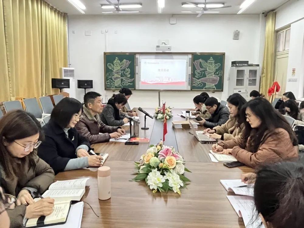 学院党总支书记陈勇领学习近平总书记在二O二三年新年贺词、在中共中央政治局民主生活会上的重要讲话精神,并结合中央和省、市委经济工作会议及市“两会”精神对2023年学院党建工作进行汇报说明。