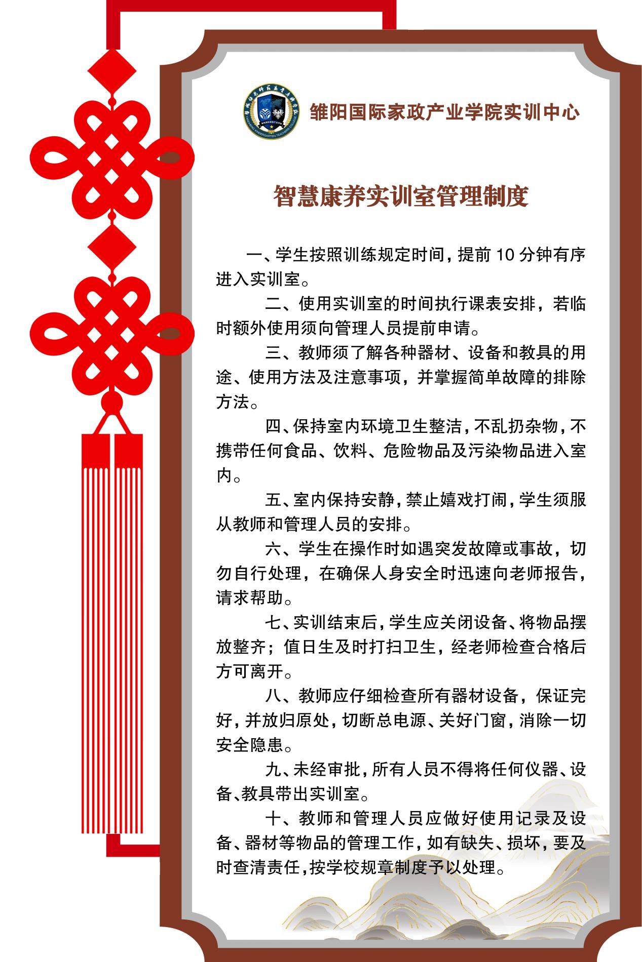 5.师生须珍惜爱护实训室的设施,不得损坏、私自带走实训室教具设备。