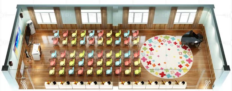 幼儿园音乐教育活动实训室主要为“学前儿童音乐教育活动设计与组织”的教学与研究提供实践教学场所。实训室配有一体机、音乐教具(其中包含奥尔夫音乐教具),可供学前教育专业、早期教育专业学生进行听力训练、节奏训练、律动训练等,也可供学生观摩和评析学前儿童音乐教育活动,开展学前儿童音乐教育活动实训,全面提升学生学前儿童音乐(奥尔夫)教育活动的设计与组织能力。