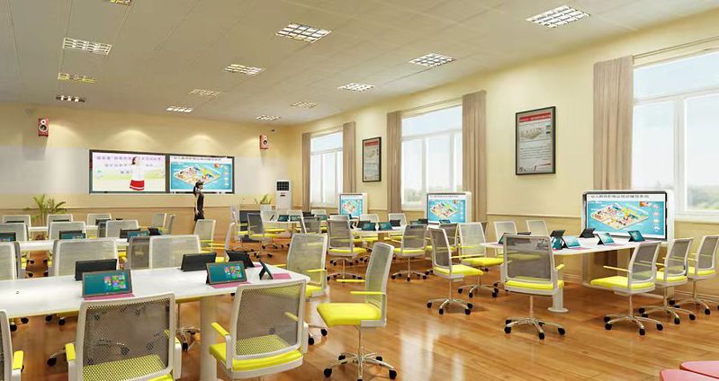 智慧教室是数字教室和未来教室的一种形式,是一种有别于传统授课的新型教育形式。该新型教室通过各类智能装备辅助教学内容呈现、便利学习资源获取、促进课堂交互开展,实现情境感知和环境管理功能。智慧教室旨在为教学活动提供人性化、智能化的互动空间,通过物理空间与数字空间的结合,本地与远程的结合,改善学习者与学习环境的关系,实现学习者与环境的自然交互,促进学生个性化学习和开放式学习。智慧教室可进行集体教学或分组教学,可容纳50名学生,可供各个专业师生开展录播、模拟授课、赛课等信息化教学活动使用。