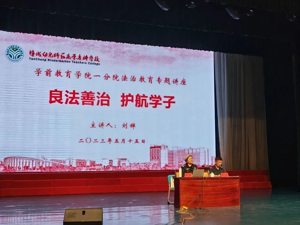 为提高学生的法治意识和自我保护能力,提升学生的法制观念和安全意识,515日晚,学前教育学院一分院邀请“中国好人”刘婵警官为学院学生作了《良法善治 护航学子》法治教育主题讲座。学院党总支书记陈勇、副院长于飞、团总支书记庄海龙、辅导员、班主任以及学生代表参加讲座。
