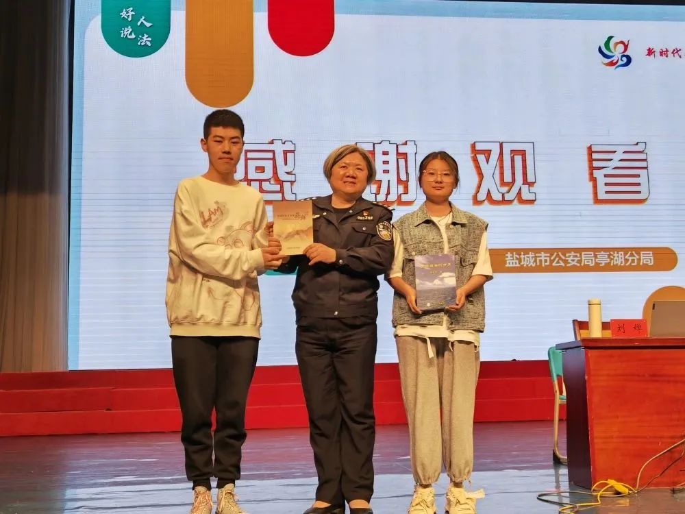 讲座结束后,刘婵警官还向学生代表赠送书籍,与学生代表面对面交流。同学们纷纷表示,通过认真聆听刘婵警官的讲解受益良多,要从身边小事做起,既不侵害他人合法权益,也要运用法律武器来维护自身合法权益,做一个遵纪守法的好公民。