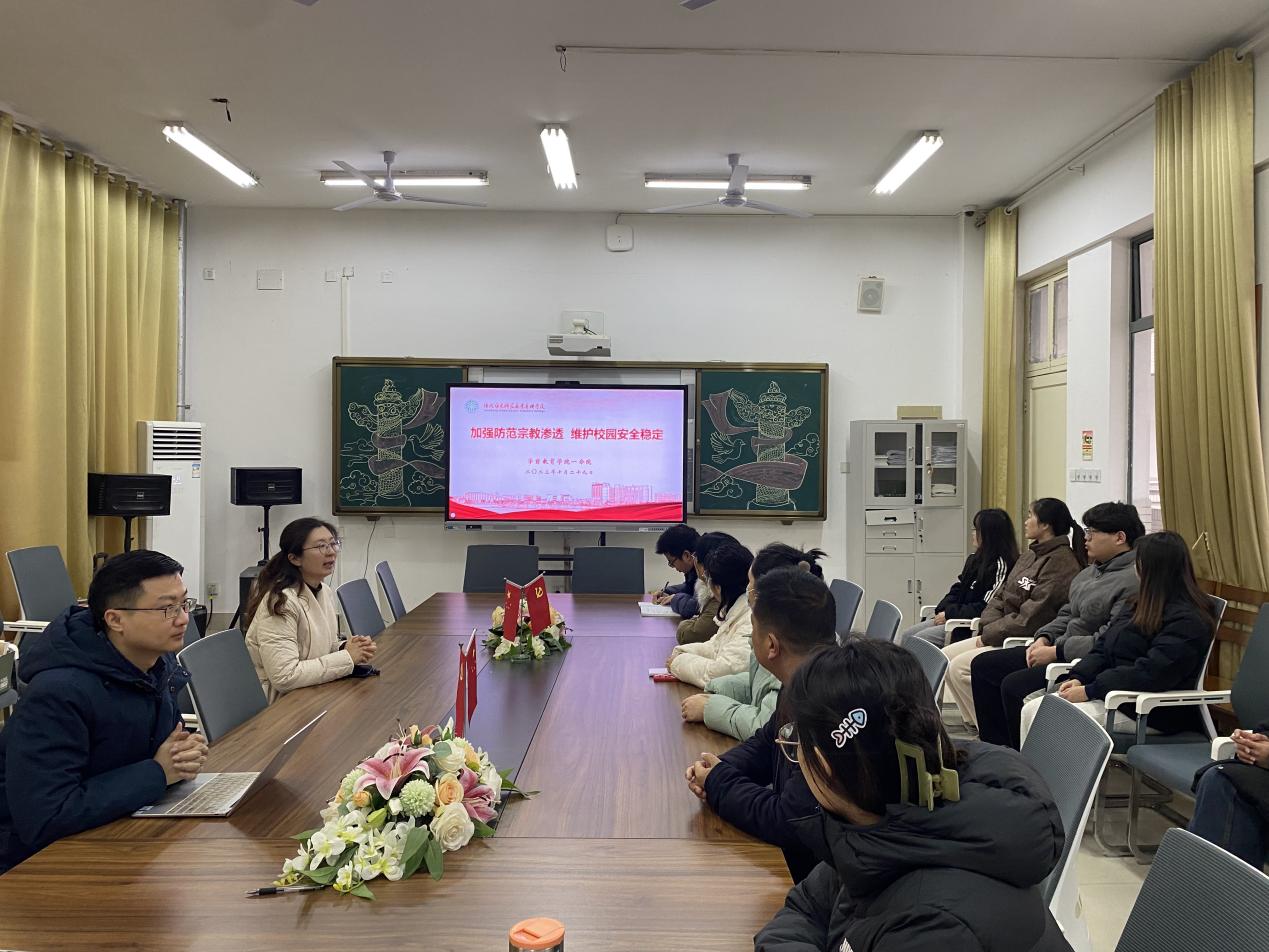 10月29日,学前教育学院一分院召开防宗教渗透专题会议,旨在加强校园安全管理,维护校园的安全与稳定。副院长于飞,团总支书记庄海龙,辅导员、学生干部等参加会议。