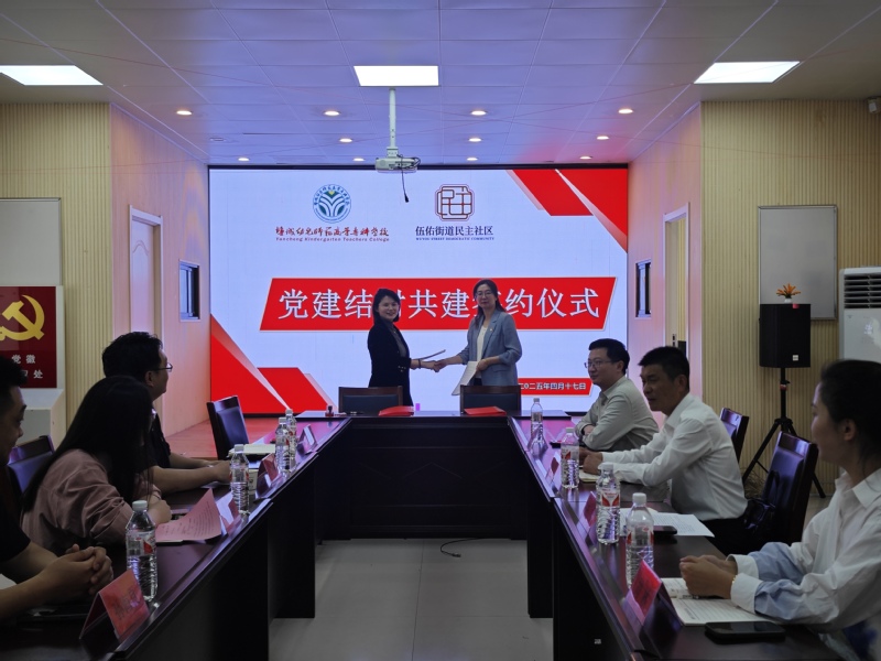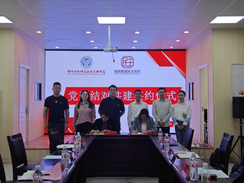 为深入学习贯彻落实党的二十大和二十届三中全会的精神,创新基层党建工作载体,推动“学校+社区”党建工作协同发展,4月17日下午,学前教育学院一分院学生工作党支部与伍佑街道民主社区举行党建共建结对签约仪式,旨在为社区居民提供更优质、多元的教育服务,搭建学校与社区深度合作的桥梁。伍佑街道宣传委员尤小峰、伍佑街道团工委副书记、党建办负责人李欣彤、民主社区党总支书记、主任黄兰芹、民主社区党建负责人孙海良,学院党总支书记陈勇、副院长于飞、团总支书记庄海龙、康养专业专任教师刘林等参加活动。
